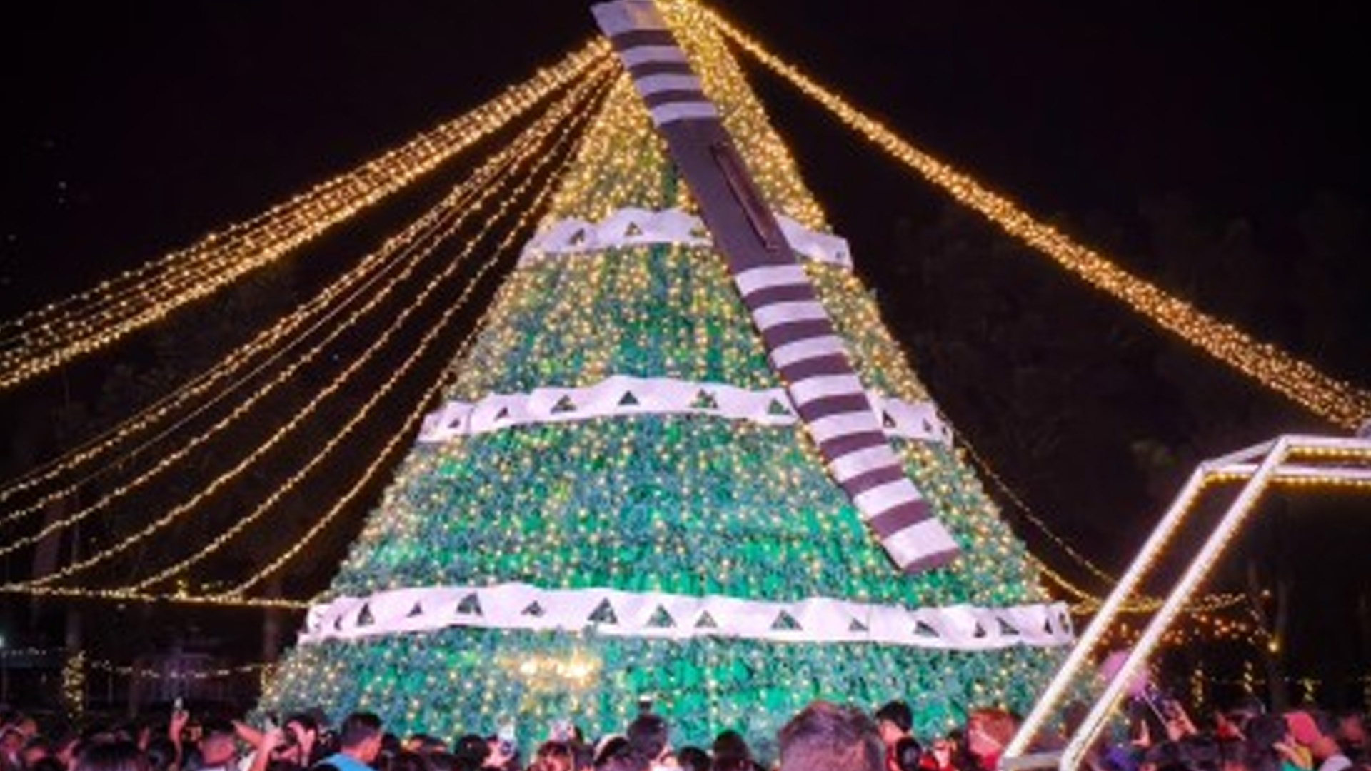 This year’s giant Christmas tree in Carigara, Leyte stands out from previous displays as it features a 32-foot sundang (bolo), a symbol deeply rooted in the town’s culture and craftsmanship.