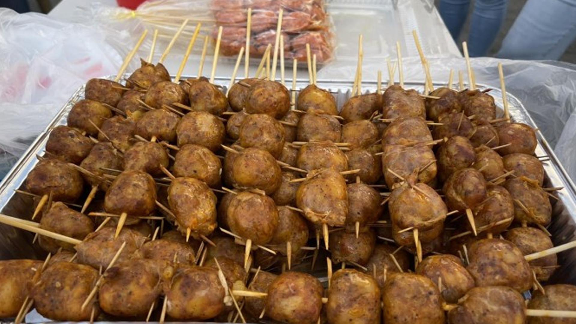 Alaminos longganisa is known for its juicy, garlicky, and tasty flavor and its trademark small bamboo sticks used to seal the sausage in smaller portions.