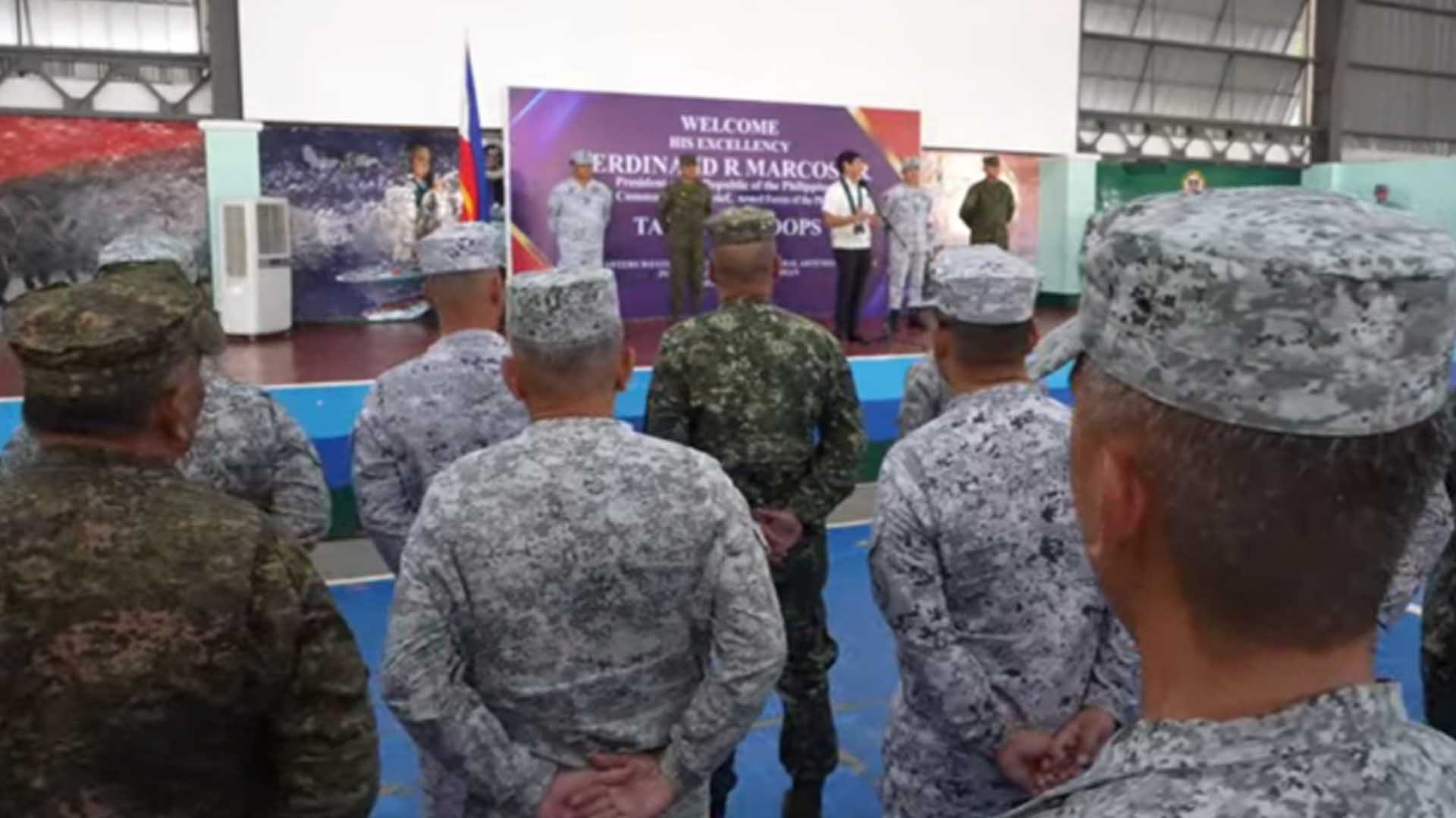 Marcos met with the Wescom troops at Camp General Artemio Ricarte’s Lawak Gymnasium in Puerto Princesa City, Palawan and instructed them to maintain heightened military presence in the WPS at all times.