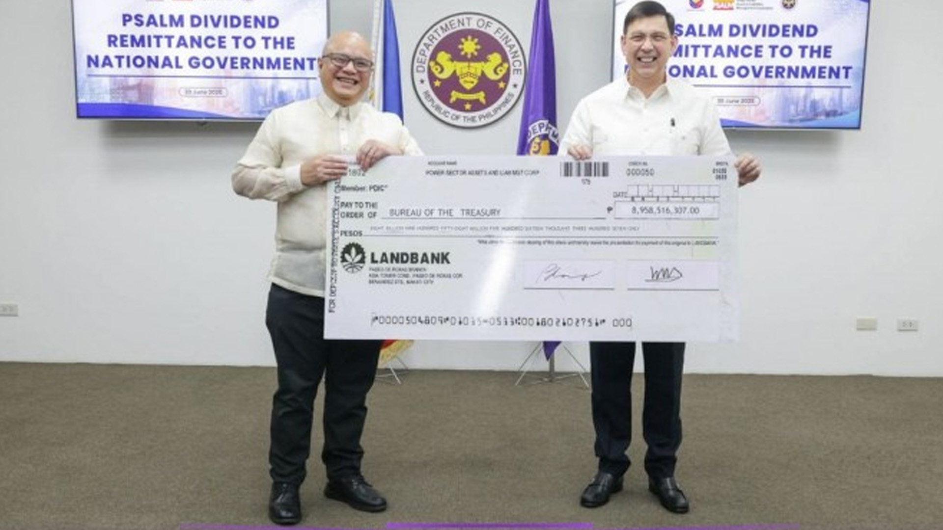 In a statement Tuesday, the DOF said Finance Secretary Ralph Recto, on behalf of the National Treasury, received the remittance during the ceremonial turnover on Monday at the DOF office in Manila.